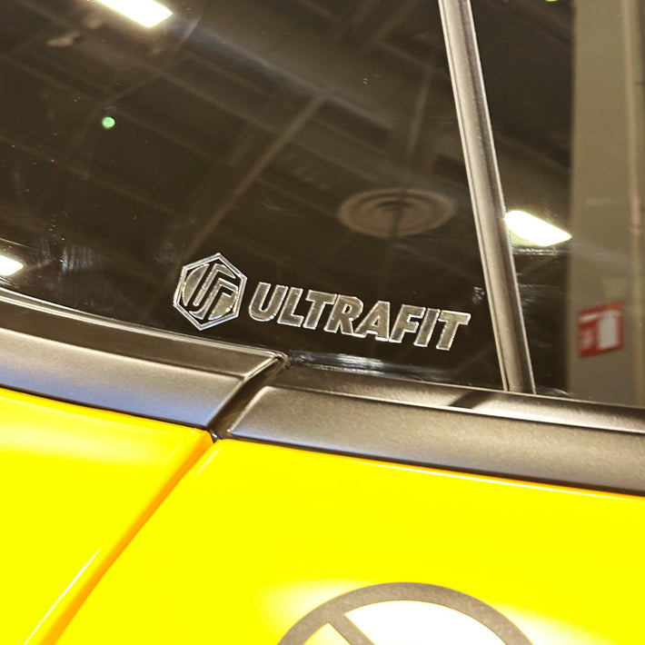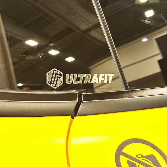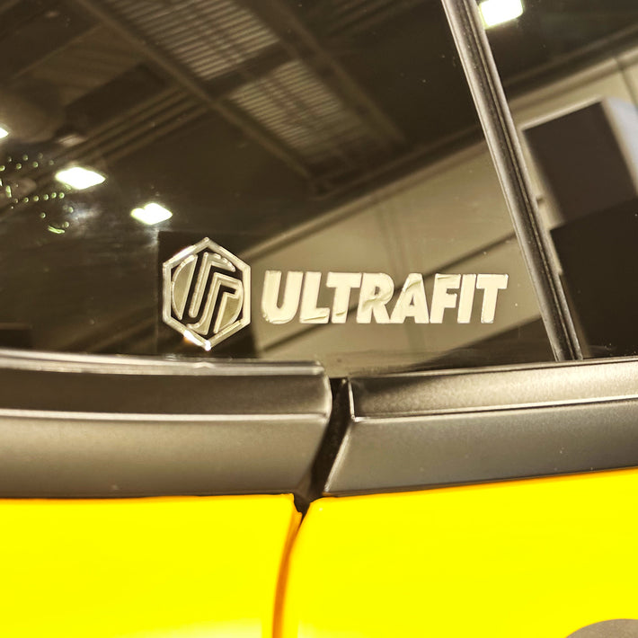 Metal horizontal logo sticker for clean ULTRAFIT branding.