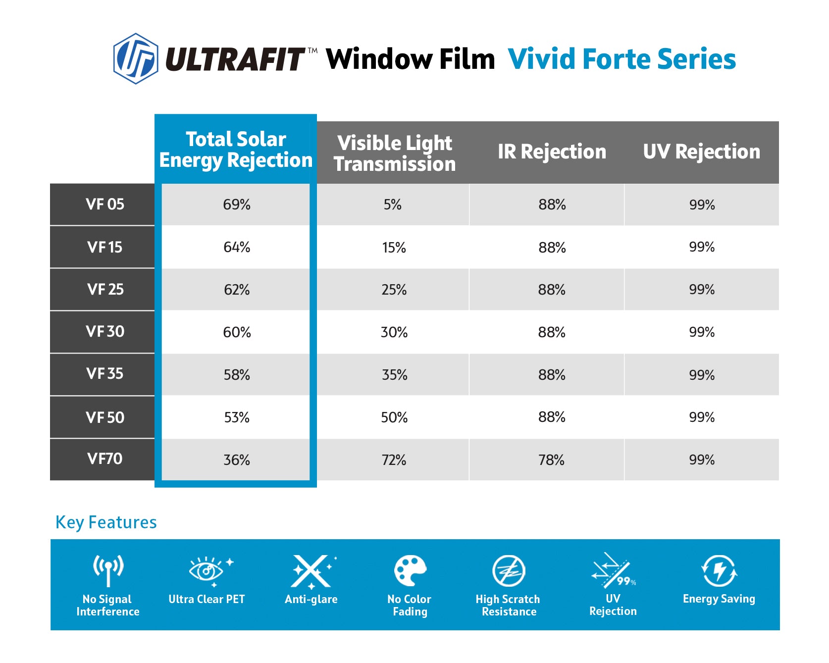 Coinciding with the market’s needs and specifications, ULTRAFIT VF was created to rise above the competition to exhibit trusted results of IR rejection.